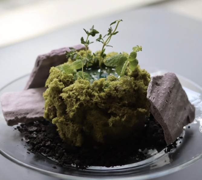 시그니처 메뉴인 못케이크는 푸릇한 잔디와 바위로 연못의 모습을 그대로 담아 만들었다. 커피는 베르크 로스터스의 원두를 사용하여 어떤 디저트와도 잘 어울리는 커피맛을 즐길 수 있다.