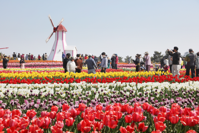 튤립 20여 품종, 영원한 사랑을 의미하는 300만 송이 튤립은 만개되어 형형색색으로 장관을 이룰 것으로 보인다.