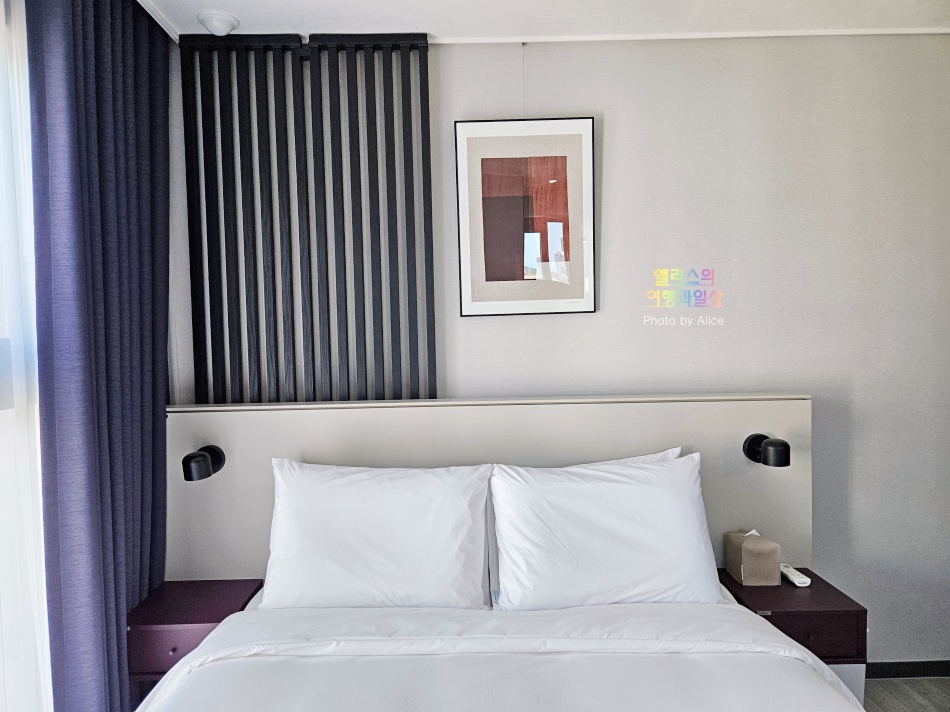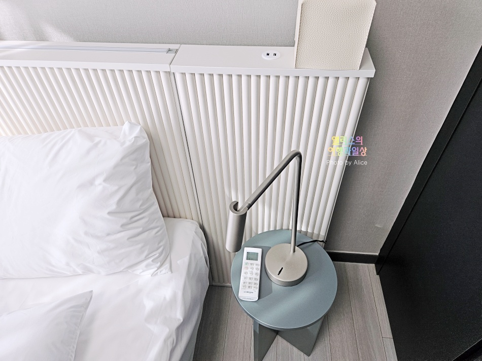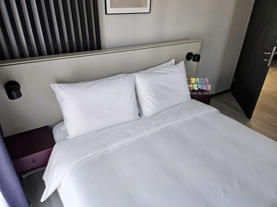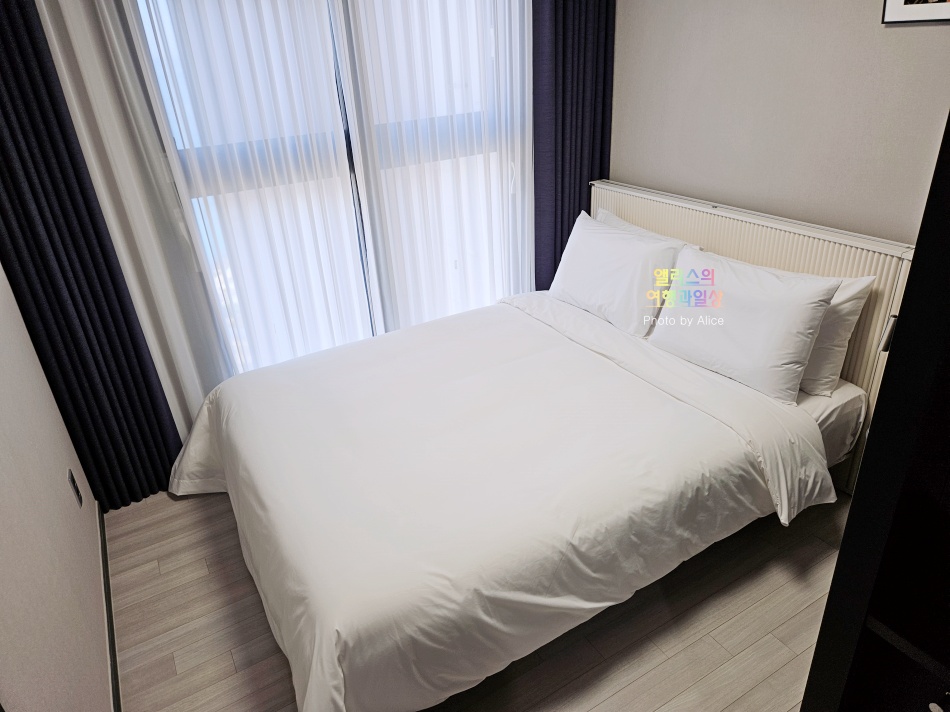 침대는 더블베드로 충분했고 성인 두 명이 자기에 불편함이 없었다. 침구류도 깔끔했고 푹신했기에 잠을 청하기에도 알맞았다.