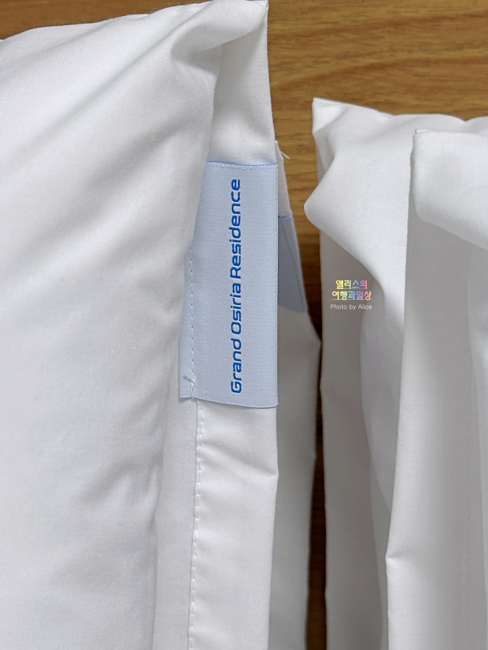 보통 레지던스에서는 일반 베개가 준비되어있는데 하나는 일반 베개이고 또 다른 하나는 경추베게이다. 선택적으로 사용 가능하다는 점에서 센스 굿!