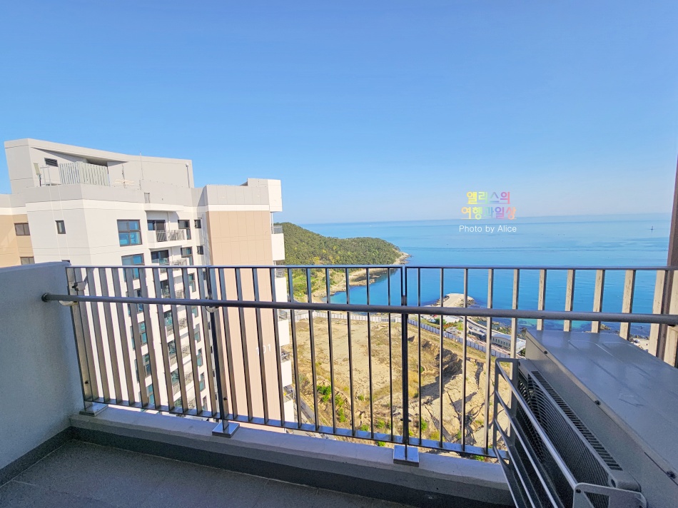 거실로 이어지는 베란다 공간이 있어 바깥을 볼 수 있었다. 오션뷰라는 이름답게 한적한 기장 바다가 곧바로 보였다. 여름에도 한적한 기장바다는 그래서 뷰로 두기에 좋다.