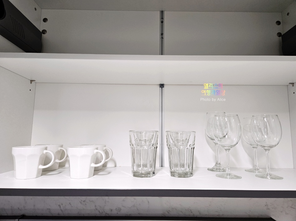 냉장고도 충분히 크다. 보통 레지던스에서는 생수가 무료 제공되지 않는데, 그랜드 오시리아 레지던스의 냉장고 내에는 생수 두 병이 있었다.