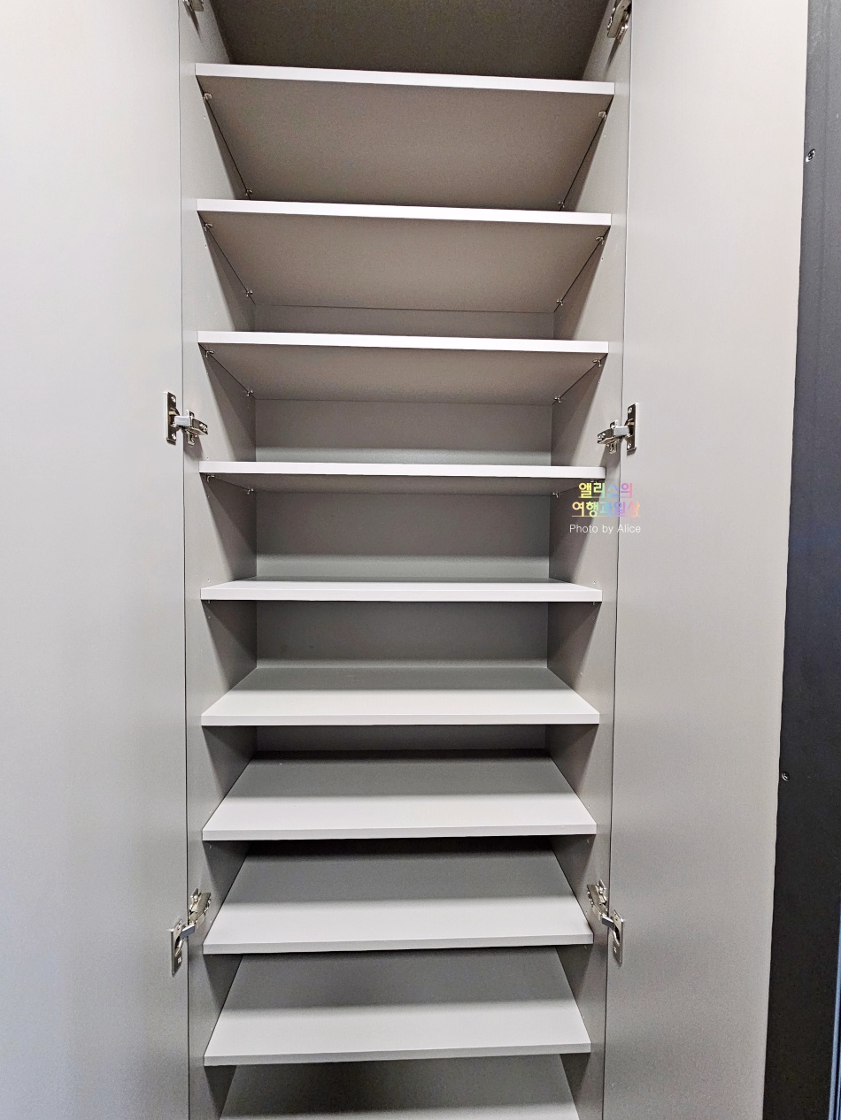 입구는 평범한 크기였지만 수납장은 절대 평범치 않았다. 많은 신발을 한 번에 수납할 수 있고 기타 등등의 짐등도 간편하게 수납할 수 있는 입구의 신발장&수납장은 여러명이 이 공간을 동시에 이용하더라도 수납이 편리할 수 있다는 장점이 컸다.