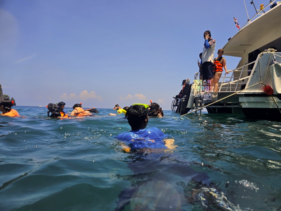 프리미엄 스피드 카타마란에 탑승하는 손님들의 국적은 다양했고 그만큼 숫자도 다양했다. 하지만 직원들은 정말 친절했고 특히 스노클링할 때 스노클링 지역을 밧줄로 표시를 해두어서 혹시나 스노클링에 집중하느라 자신의 구역을 벗어나는 일이 없어도록 했다.