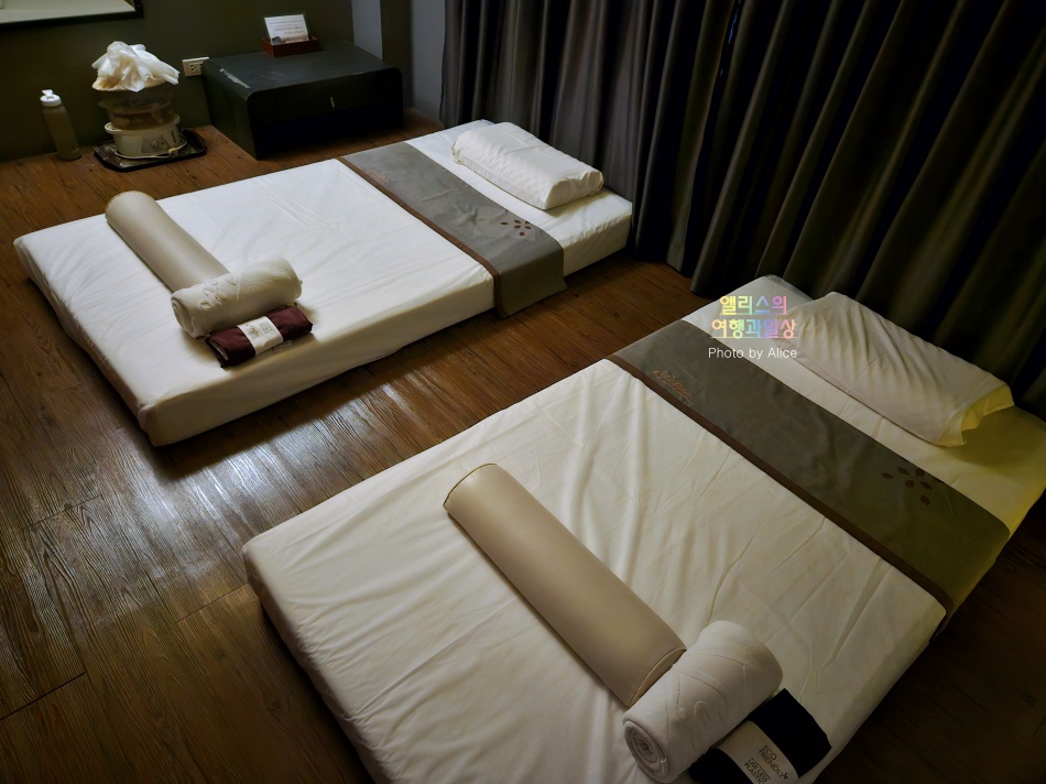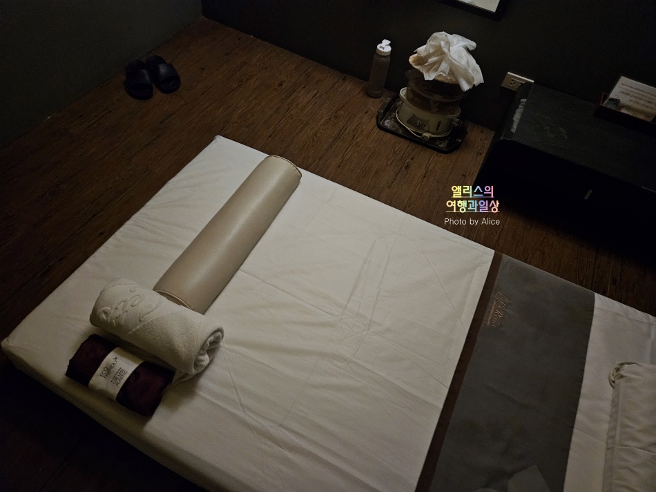타이마사지 특성상 오일을 사용하지 않는 건식이라는 점이 좋았고 미리 강하지 않게 부탁드린 상태로 마사지를 진행하였다.