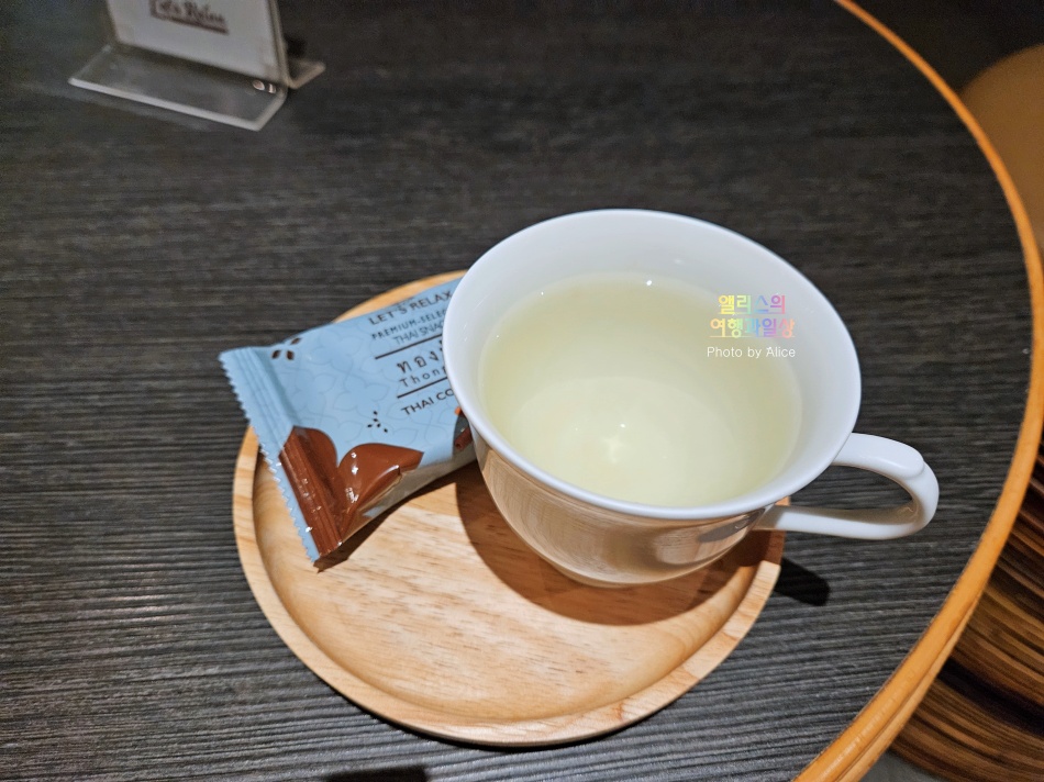 테라피스트를 만나기 전 잠시 시원한 음료 한잔을 마시고 (레몬그라스 차) 시원한 물수건에 땀을 닦으면 기다렸다.