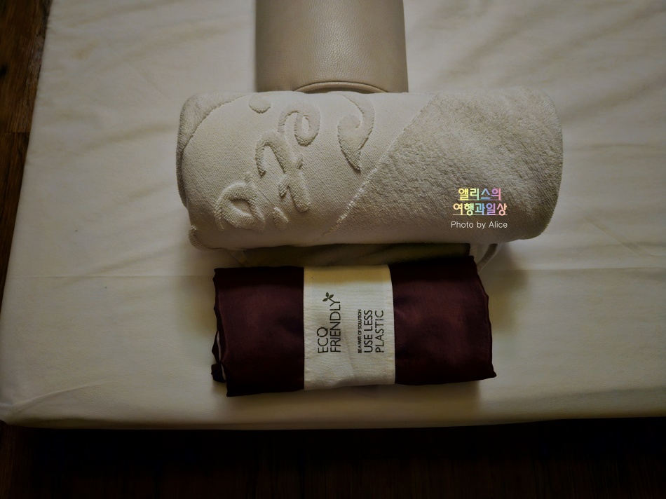 마사지가 끝날 때쯤 따뜻한 물수건과 아로마 오일을 이용해서 향과 온도를 이용한 마무리를 진행하였다. 특히 어깨와 가슴 부분 그리고 뒤통수 부분을 따뜻한 온도와 향을 활용해 지극히 압박해주는 느낌은 꽤나 괜찮았다.