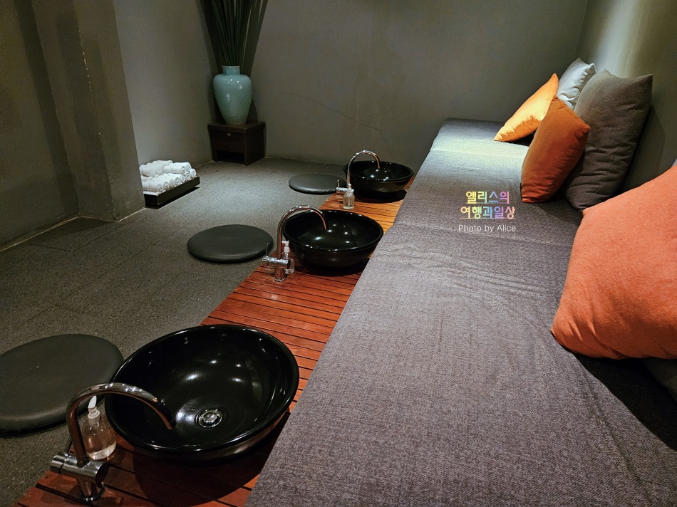 오랜 시간이 걸리지는 않았고 간단하게 발을 깔끔하게 씻어주었다. 샤워하고 왔으나 앞서 말한대로 시장통을 거쳐서 왔더니 그새 다리에 먼지가 있었는데 족욕으로 깔끔하게 제거하니 기분이 좋았다.