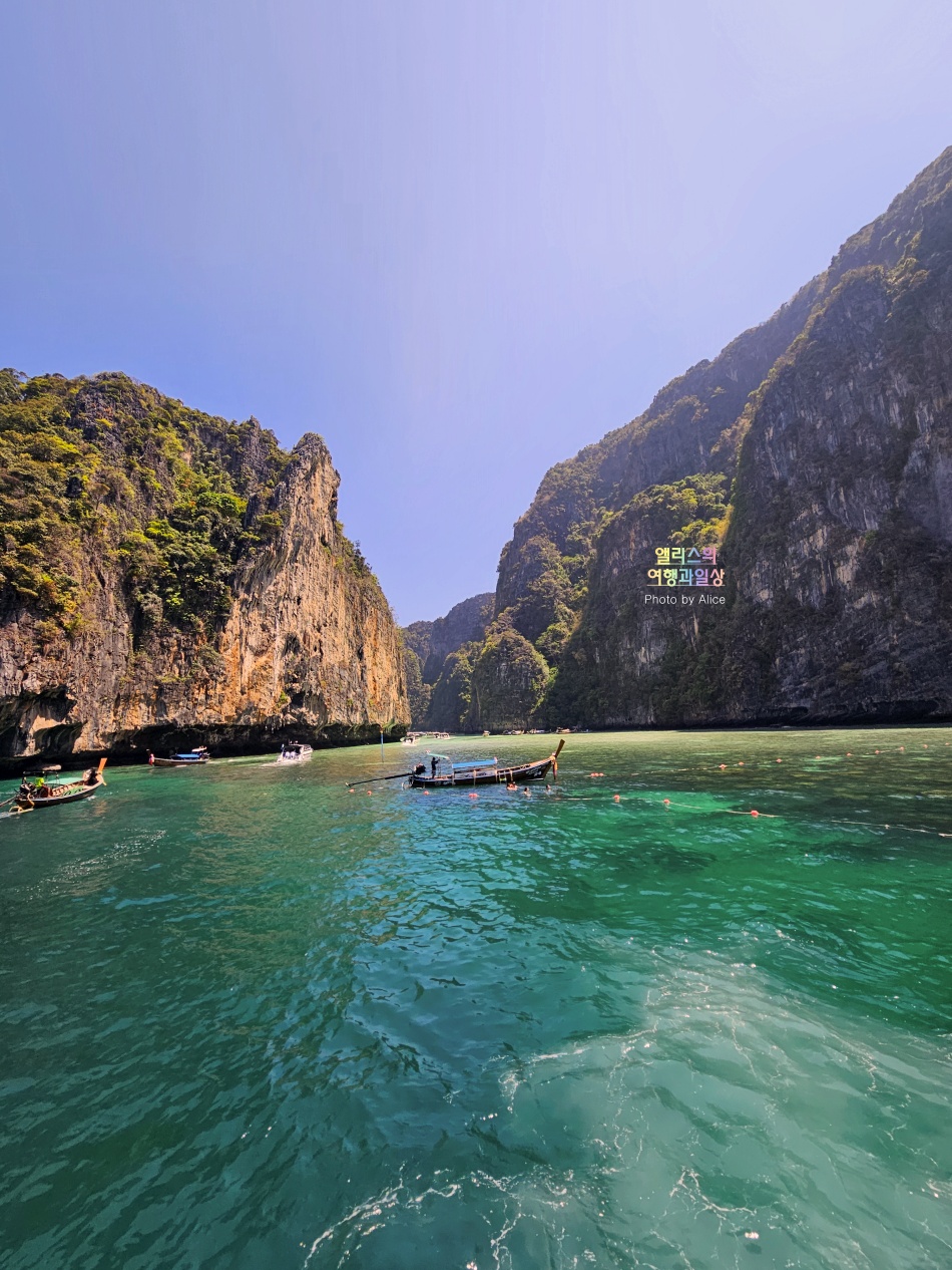 섬에 내려서 데크길을 그대로 따라 걸어가면 멋진 풍경의 마야베이를 볼 수 있다.