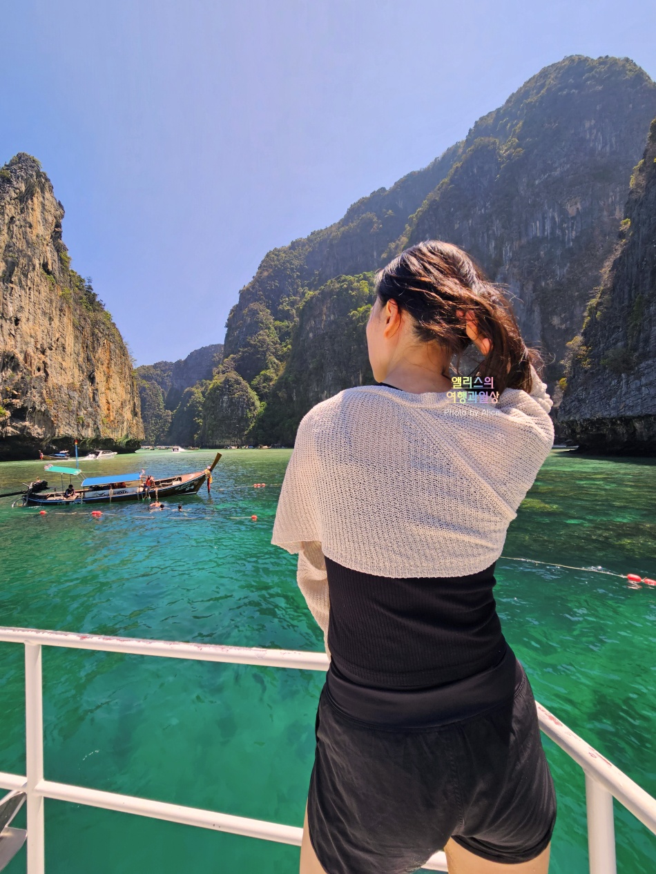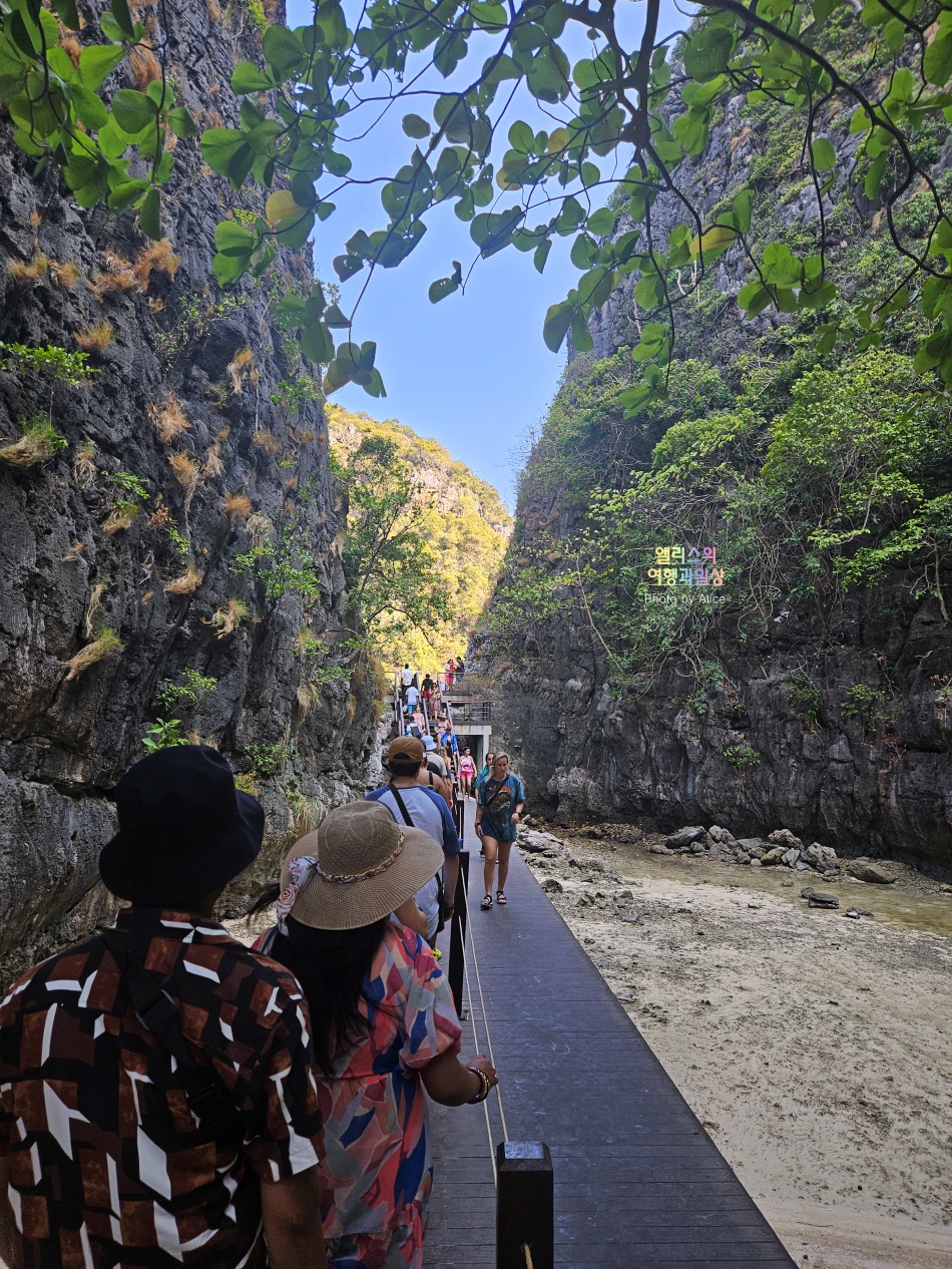 섬에 내려서 데크길을 그대로 따라 걸어가면 멋진 풍경의 마야베이를 볼 수 있다.