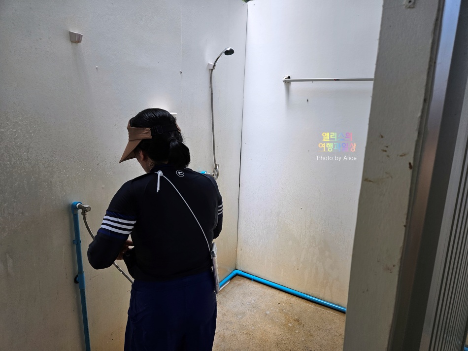 코끼리 샤워가 끝나면 간이 샤워실에서 간단하게 몸을 헹굴 수 있고 옷을 갈아입을 수 있지만 대부분 귀찮아서 그냥 래시가드나 수영복 입은 채로 간단하게 샤워실에서 몸을 헹구었다. 그리고 그대로 수건으로 탁탁 최대한 닦고 말린 뒤 픽업 차량에 타고 호텔로 돌아간다.