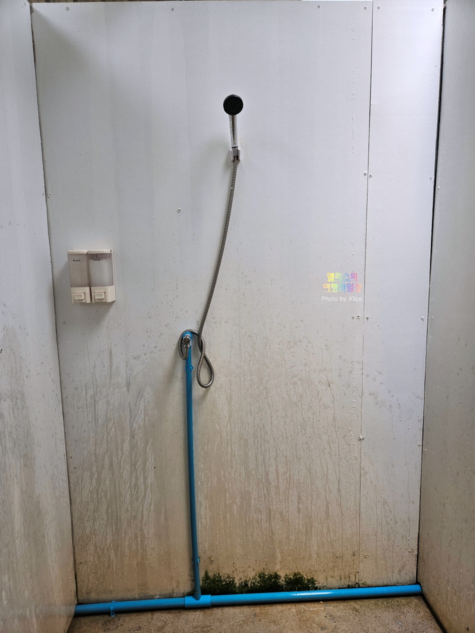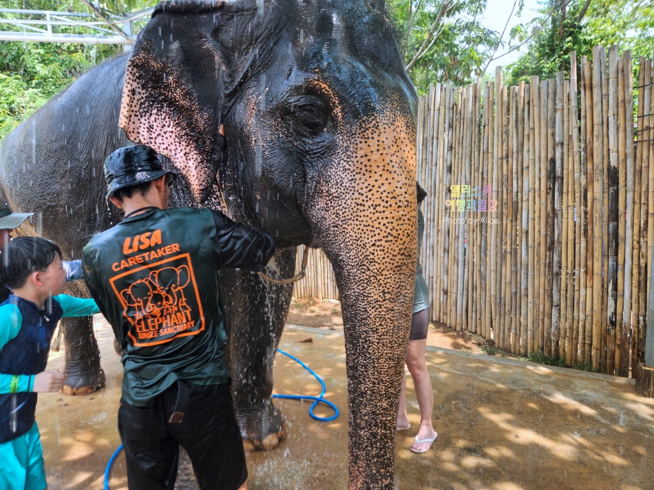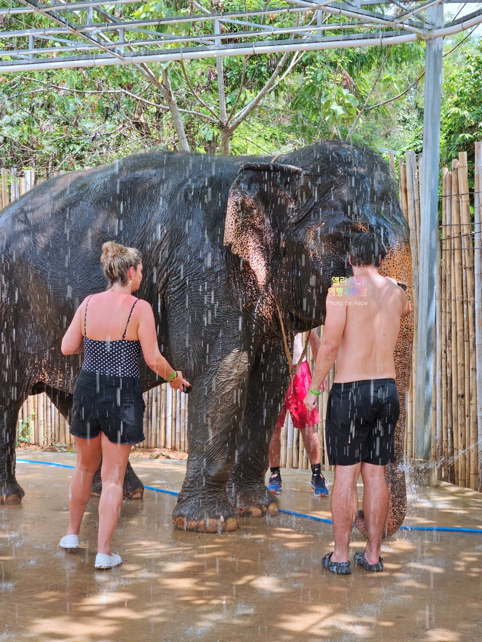 오전/오후 반나절 프로그램을 선택하면 코끼리 머드목욕 시키기가 가능하고 나처럼 짧은 오전/오후 먹이 주기&목욕시키기 프로그램을 선택하면 샤워장에서 더운 날씨에 더위를 식히고 신나게 물놀이하는 코끼리를 목욕시킬 수 있다.