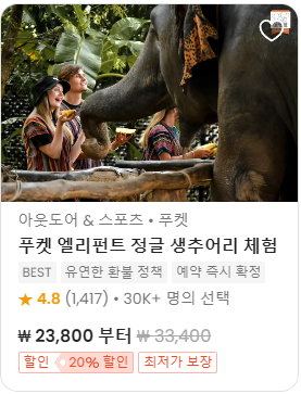 → 푸켓 엘리펀트 정글 생추어리 체험 프로그램 자세히 보기