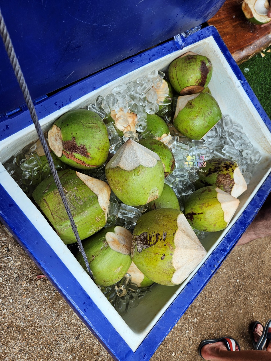 코코넛 한 개당 100바트. 섬인 관계로 모든 물가가 태국 물가치고는 비싼 편이다. 이건 어쩔 수 없지.