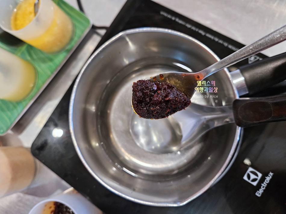 재료는 모두 준비가 되어있으니 순서대로 계량맞추면서 넣어주고 끓이기만 되는 간단한 요리였다.