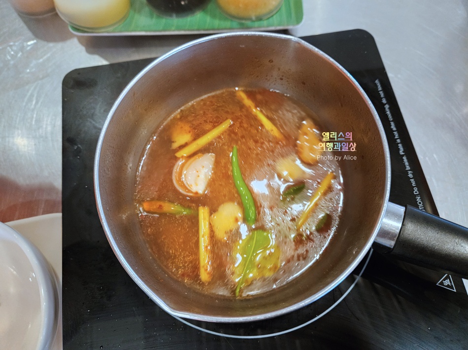 태국에서 주로 사용되는 소스에 대해서도 배우는 시간.
