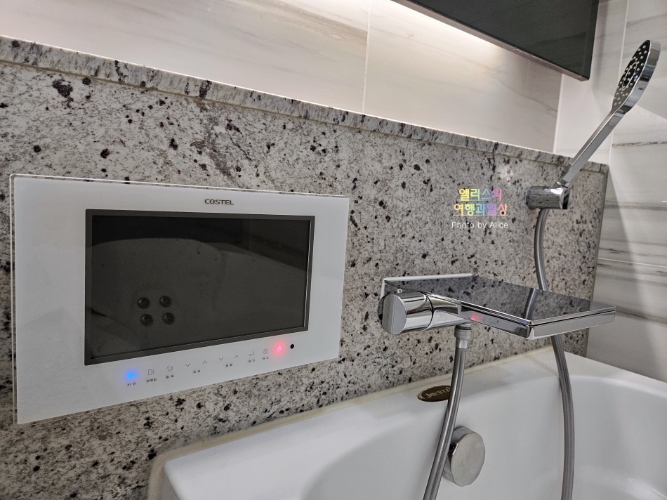 욕조도 충분히 넓고 욕조 옆에 화면도 별도로 있다.