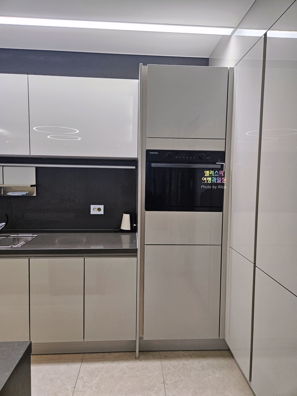 특히 아일랜드와 식탁이 이어지니 공간을 잘 활용할 수 있었고 아일랜드에서 간단하게 음식을 할 수 있는 공간이 충분히 넓어서 여러모로 편리했다.