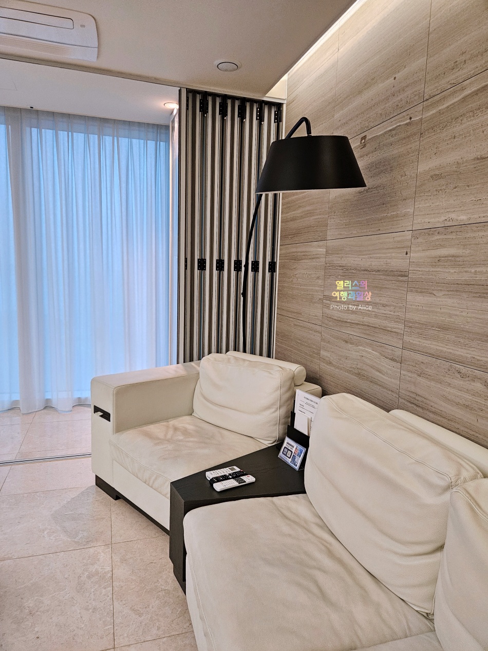 즉, 고객이 어떤 방식으로 그랜드 엘시티 레지던스에 도착했느냐에 따라서 고객의 편리성에 맞춰 체크인 장소가 진행되니 참고하자. 나의 경우 대중교통으로 이동해서 편리하게 1층 로비 소파에 앉아서 간단하게 체크인을 할 수 있었다.