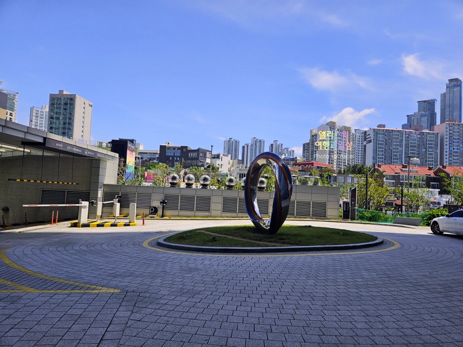 대중교통으로 이동했다면 도착 후 건물을 바라보는 방향을 기준으로 왼쪽으로 이동해야한다. 오른쪽은 시그니엘 호텔 입구, 왼쪽은 엘시티 레지던스 입구이기 때문. 특히 위 사진에 찍힌 조형물을 참고하면 찾기가 더 쉽다.