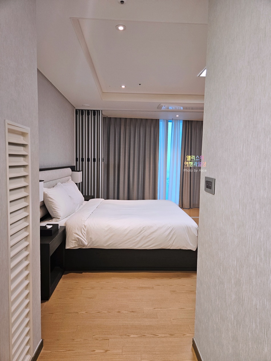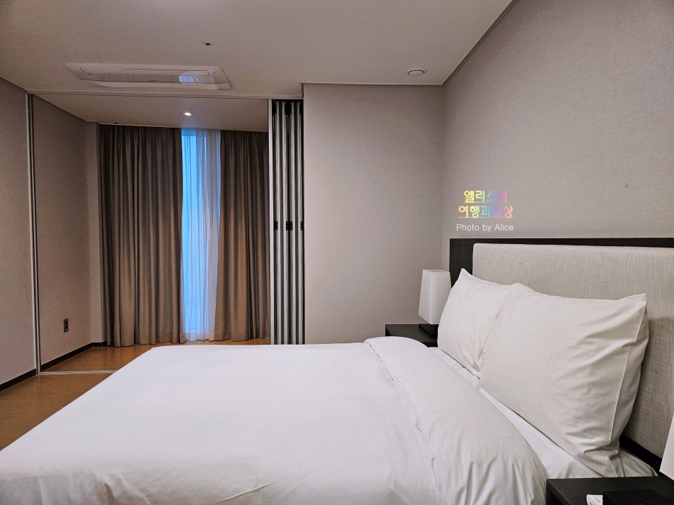 그리고 그 만큼 침대도 넓다. 공간이 넓어서 오히려 넓은 침대가 안느껴질 정도! 침실 내에서도 창문이 있기 때문에 해운대 백사장 뷰를 그대로 메인 침실에서도 볼 수 있다.