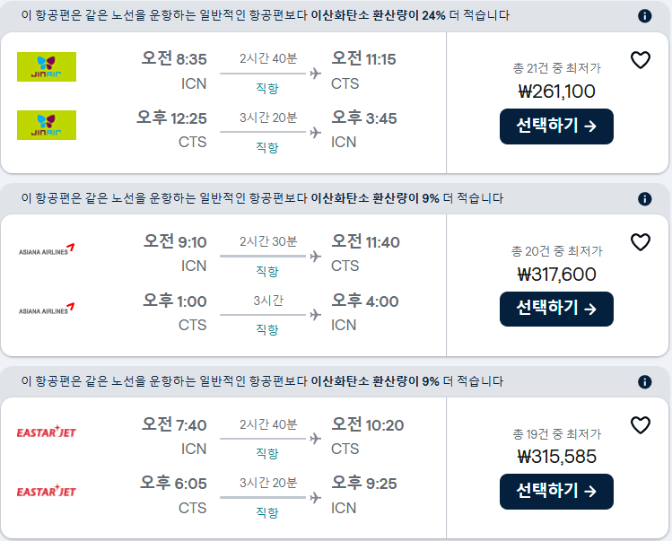· 인천: 제주항공, 이스타, 진에어, 아시아나, 대한항공, 티웨이, 에어부산
