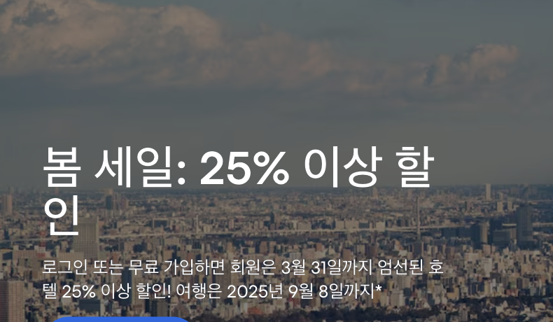 ◼︎ 호텔스닷컴 봄 세일 프로모션 25% 할인