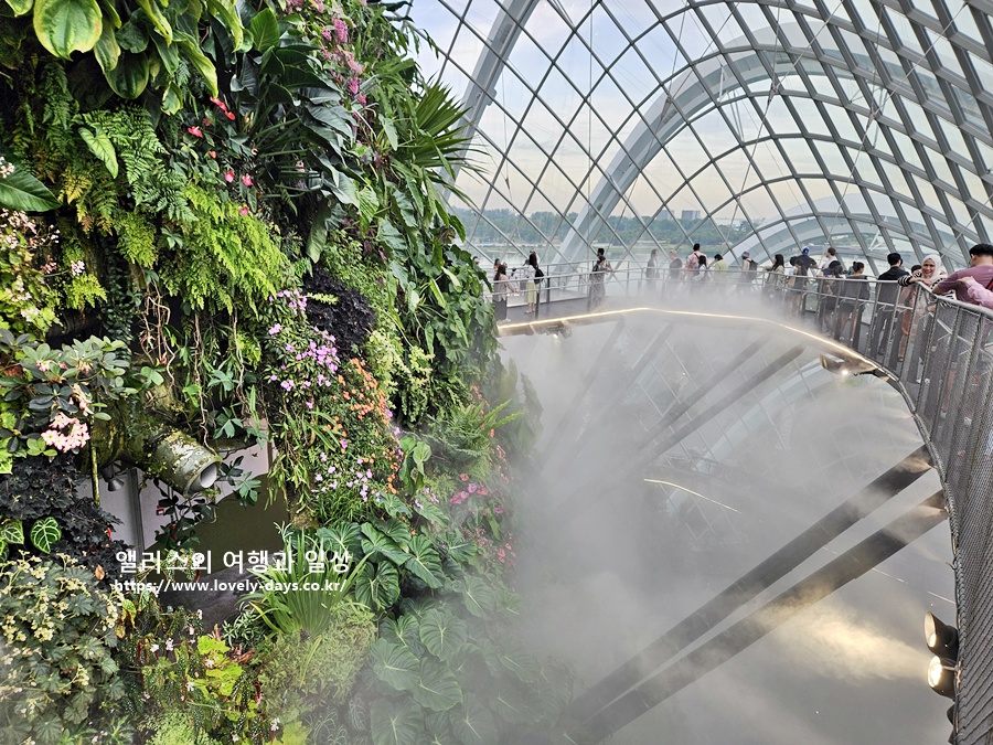 클라우드 포레스트는 세계에서 가장 높은 실내 폭포(35m)를 자랑하며, 습한 고산 지대의 식물을 전시해 독특한 생태계를 연출한 공간이다. 플라워 돔은 다양한 기후대의 식물을 만날 수 있는 세계 최대 규모의 유리 온실이다.