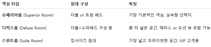 📌 바다 전망 객실은 조기 예약 필수! 성수기엔 금방 마감됨.