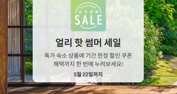 ② 할인혜택: 특정 숙소 35% 할인 특가 + 기간한정 중복 할인쿠폰