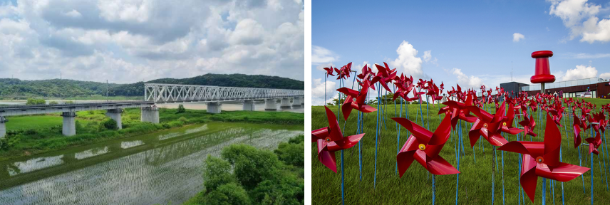 파주에 있는 평화누리공원은 탁 트인 초원과 바람개비 언덕으로 유명한 곳이다. 평화의 상징물과 전시관이 곳곳에 있어 아이들과 함께 역사 공부도 겸할 수 있다.