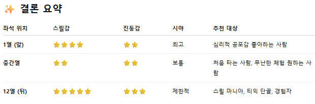 ③ 탑승 추천 대상: 스릴 좋아하는 사람, 경험자, 티익스프레스 단골들