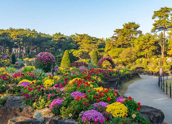봄에는 튤립, 여름에는 수국, 가을에는 단풍이 유명하다.