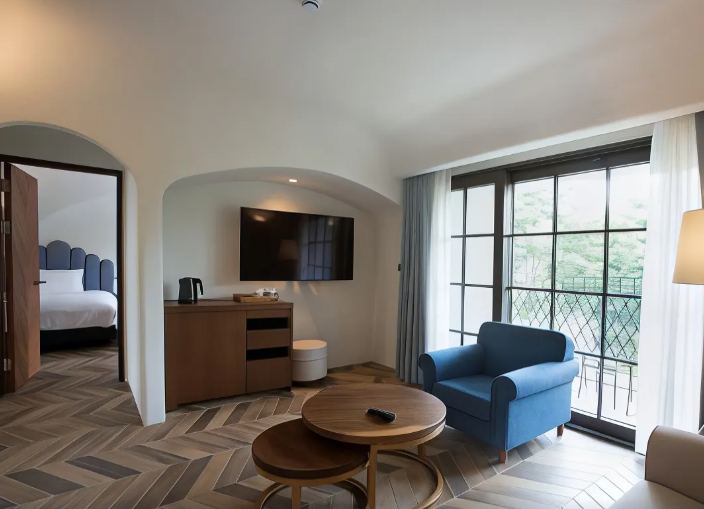 : 대형 야외 및 인피니티 수영장, 키즈클럽, 캠핑존, 연회장, 골프장(근처) 등 다양한 부대시설등이 있다. /카페, 바, 편의점, 스파, 사우나, 피트니스 센터 등도 잘 마련되어 있다.