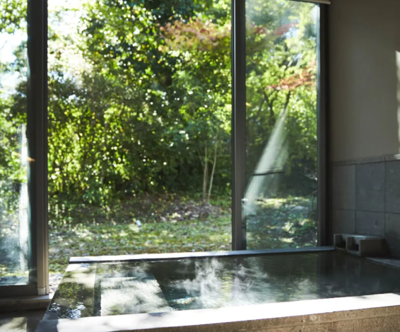 :일부 객실은 프라이빗 노천탕 보유, 대욕장, 노천탕 있다. 유후다케산 등 자연 풍경을 바라보며 온천욕 가능하다