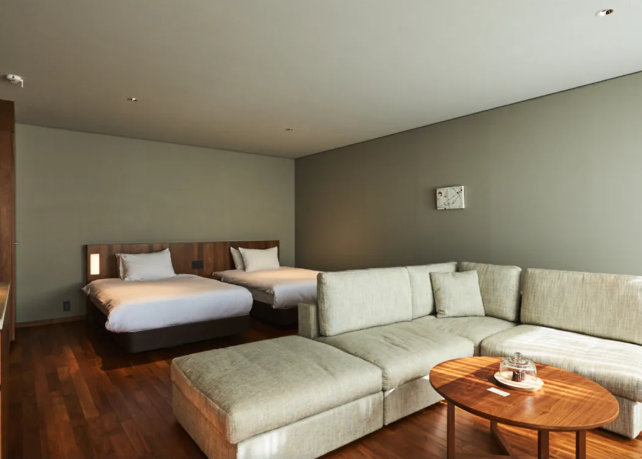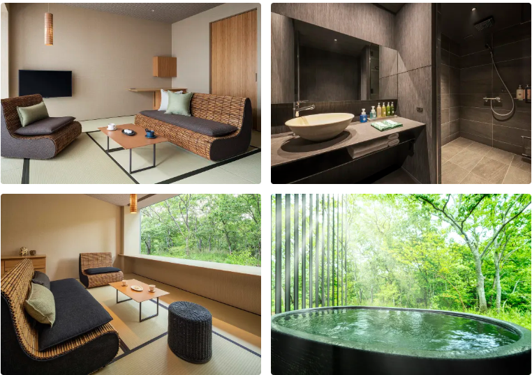 : 총 13실, 모두 스위트룸 구조 및 개별 노천탕 보유/현대적 감각의 일본식 인테리어, 깔끔하고 세련된 분위기
