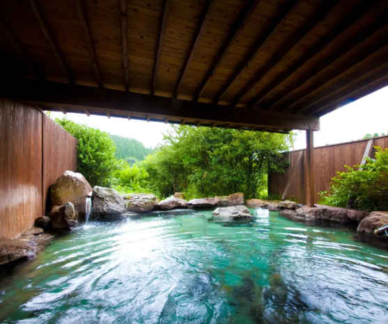 :일부 객실은 프라이빗 노천탕 보유, 대욕장, 노천탕 있다. 유후다케산 등 자연 풍경을 바라보며 온천욕 가능하다