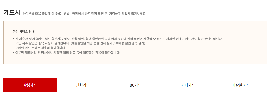 2. 아웃백 할인 종류