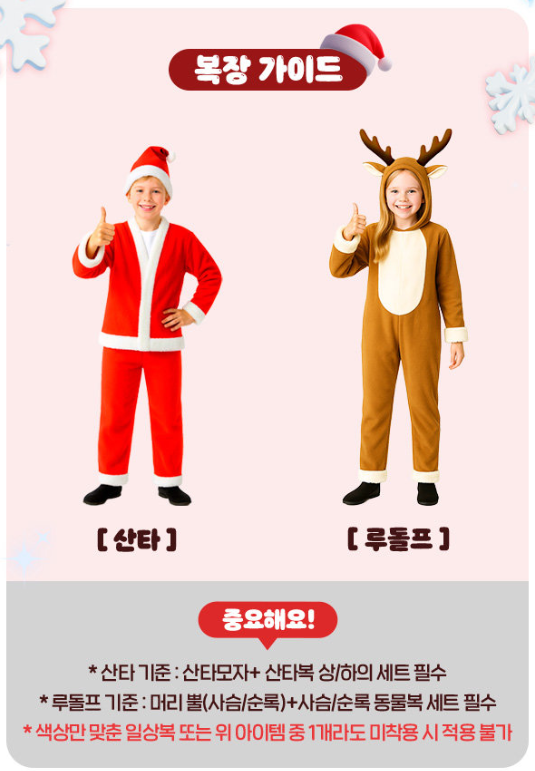 ④ 조건: 산타 또는 루돌프 '정식' 코스튬 착용 (상/하의 필수)