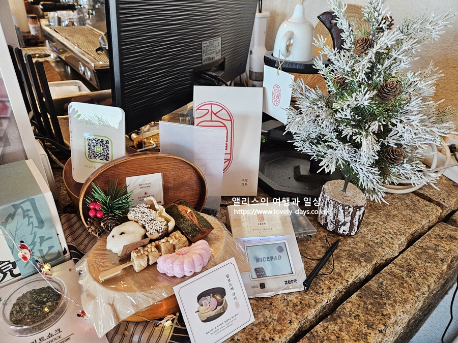 가게에 들어서면 은은한 차 향기와 함께 고즈넉한 인테리어가 반겨주는데 겨울이 오고 크리스마스가 다가오면서 수월경화만의 크리스마스 분위기가 한창이었다.