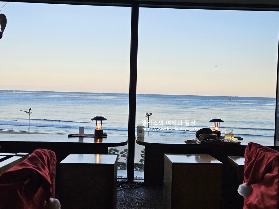 창가 좌석에서 보이는 조용한 송정바다는 언제나 매력적이다.