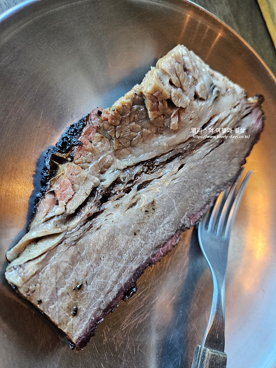 12시간 훈연했다는 말이 거짓말이 아닌 듯, 브리스킷이 입안에서 녹아내린다. 잡내 하나 없이 깊은 스모키 향이 입맛을 당긴다. 전반적으로 정말 부드럽게 즐길 수 있는 플래터라는 점이 참 좋았다.