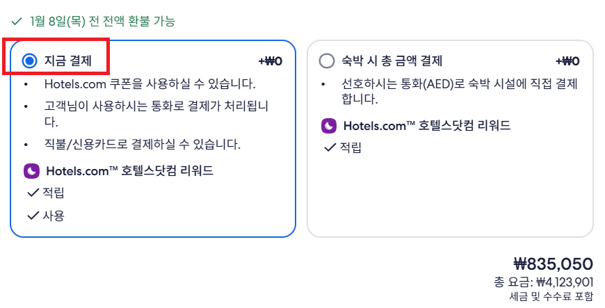 익스피디아와 마찬가지로 호텔스닷컴도 [현지 지불]을 선택하면 쿠폰 버튼 자체가 아예 사라진다.