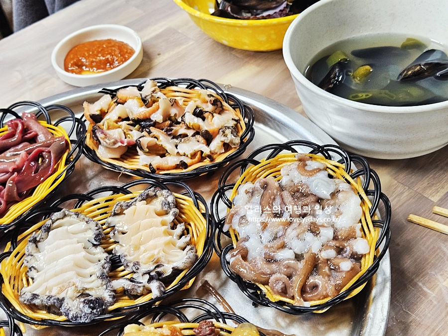 개불, 멍개, 낙지, 전복, 해삼, 삶은 소라까지.