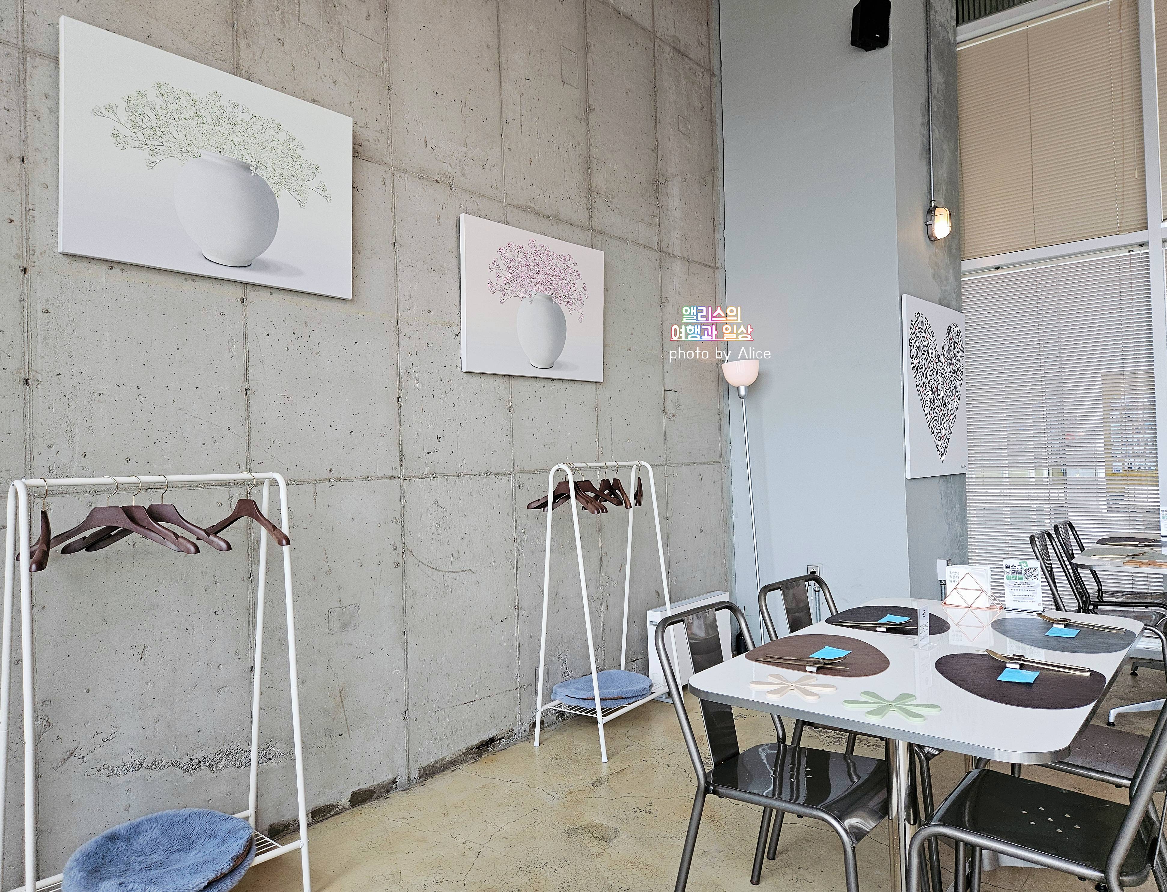 식탁간의 간격도 넓고 개인이 이용하기 좋은 옷걸이도 별도로 있고