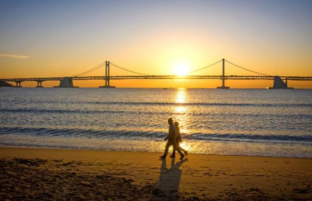 해운대가 '정석'이라면 광안리는 '감성'이다. 수평선 위로 뜨는 해가 광안대교 다이아몬드 브릿지 사이로 걸리는 순간은 그야말로 장관이다. 해가 뜰 때 다리의 조명이 꺼지는 그 찰나의 순간, 묘한 전율이 흐른다.