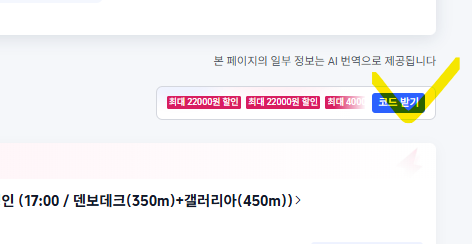 위 할인예약 링크 클릭 후 "코드받기"를 누르면