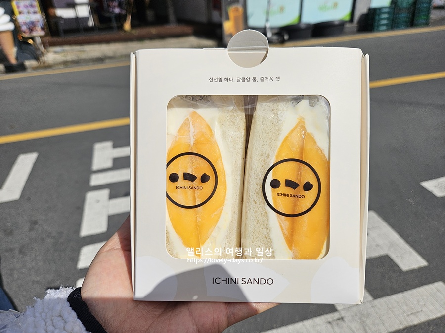 부드러운 식빵과 진한 생크림 듬뿍 그리고 망고 맛이었다. 예상 가능한 맛!