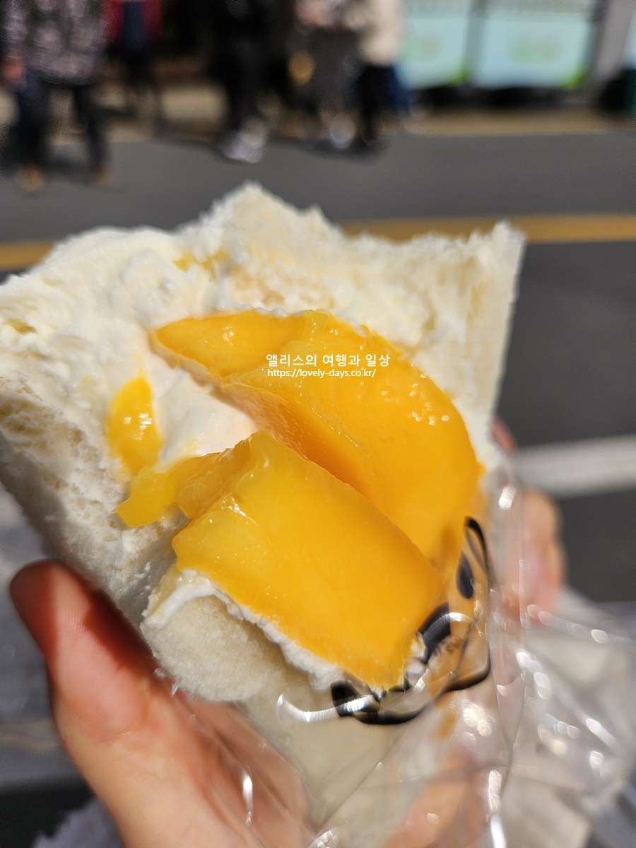 부드러운 식빵과 진한 생크림 듬뿍 그리고 망고 맛이었다. 예상 가능한 맛!