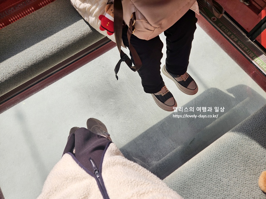 케이블카를 타고 가면서 사면이 유리로 되어있고 바닥도 유리로 되어있어서 뭔가 쾌적함이 달랐는데, 바닥이 유리라는 사실이 무서운 사람도 있었다. 바로 울 엄마